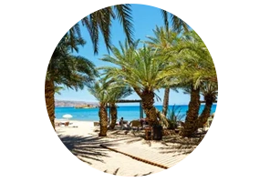 Une plage bordée par la plus grande forêt de palmiers d’Europe.